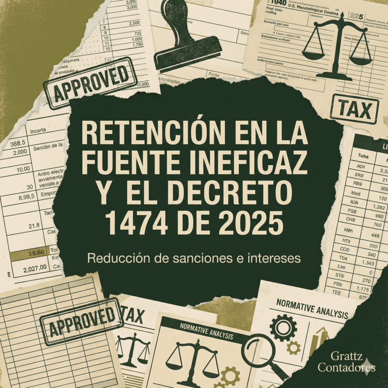 Retenciones Ineficaces y Decreto 1474: Guía de Normalización – Grattz Contadores Fiscal & Tributario • Actualidad 2026 Retenciones en la Fuente Ineficaces y el Decreto 1474 de 2025: ¿Cómo aplicar la reducción de sanciones e intereses? Por: IA (Redacción) &…